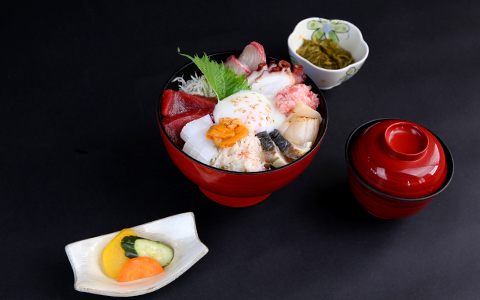 驚きのボリュームと種類が豊富な海鮮丼はむつみの定番料理です。是非一度ご賞味くださいませ。